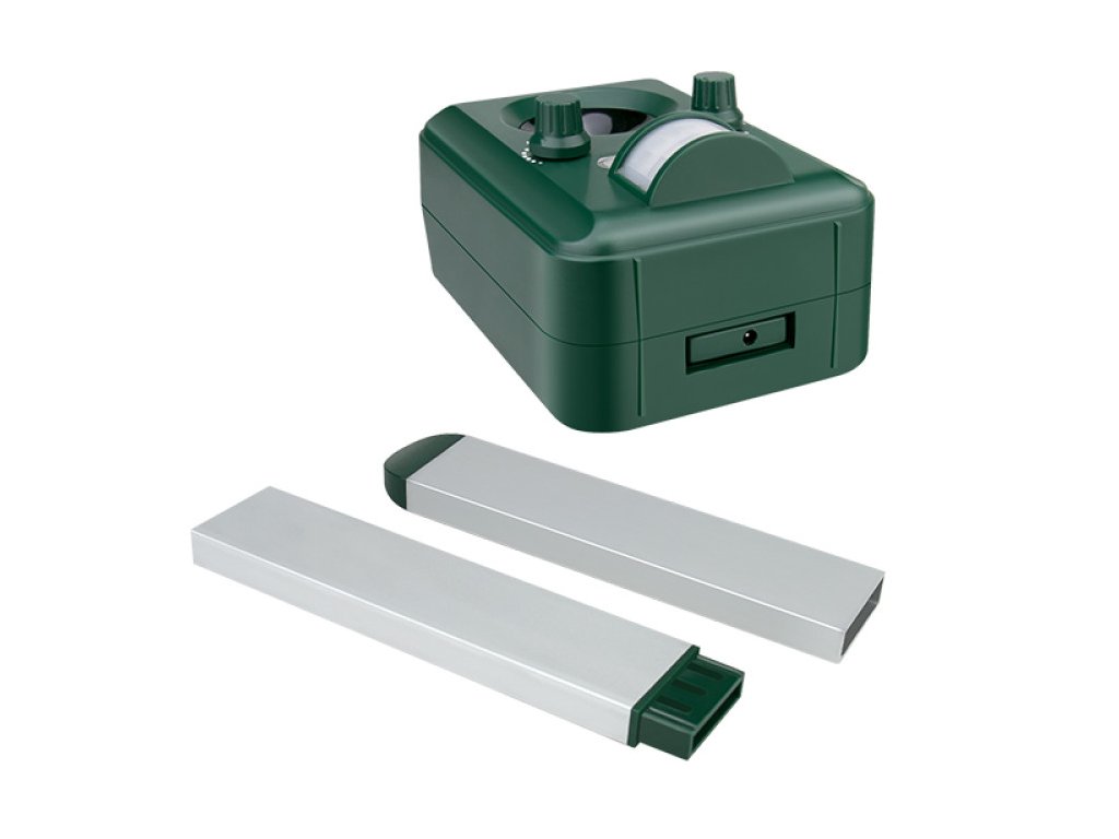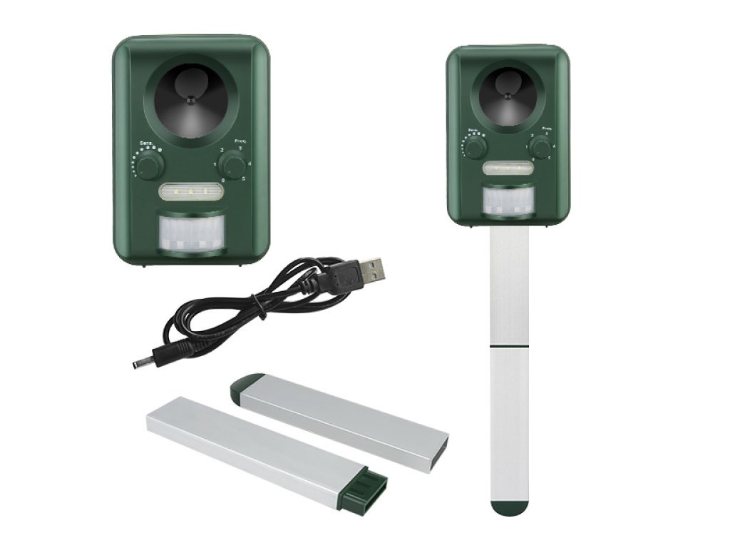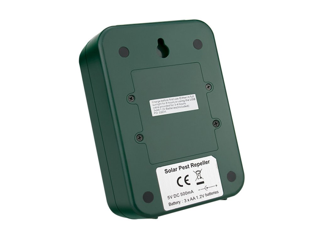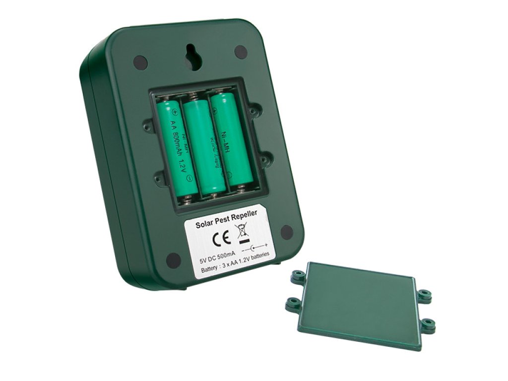 Használható beltéren és kültéren egyaránt, strapabíró, vízálló házzal van ellátva, amit a földbe lehet szúrni, vagy falra akasztani. A készülék 110°-os szögben sugároz változó frekvenciájú hangokat, hatósugara akár 1500 m². Három AA elemmel működik, melyeket napelem tölt fel, de USB-kábellel is tölthetők. A riasztó membrános hangszóróval és hatékony mozgásérzékelővel rendelkezik. A mozgás érzékelésekor erős ultrahangos jeleket és villogó fényt bocsát ki.