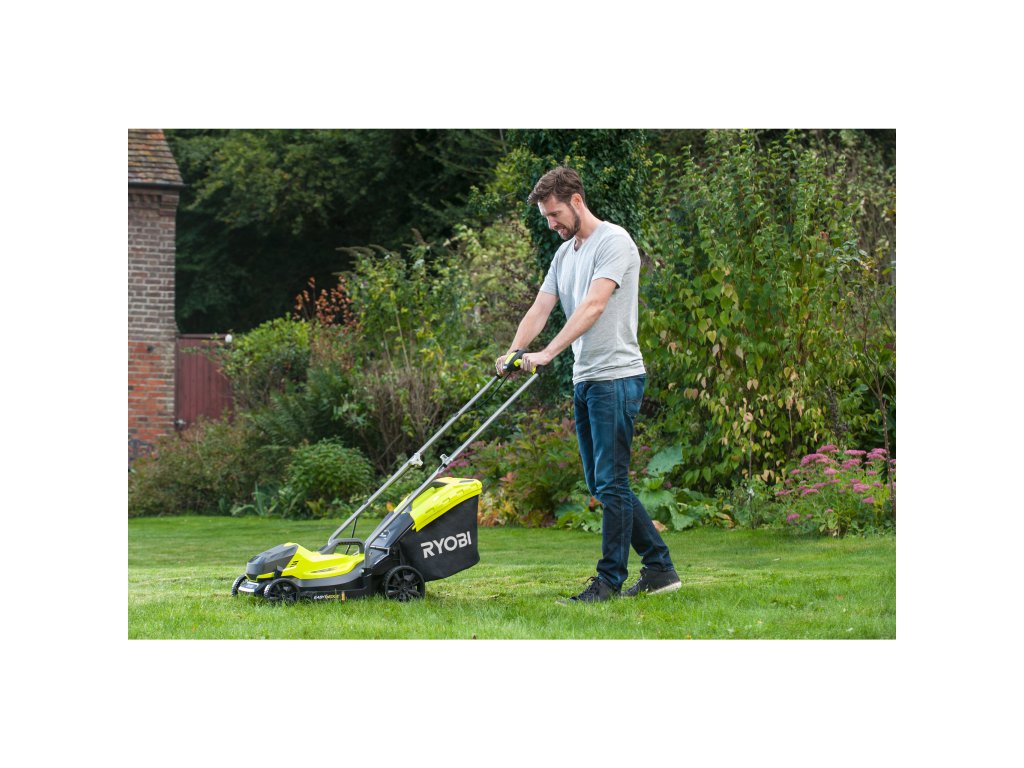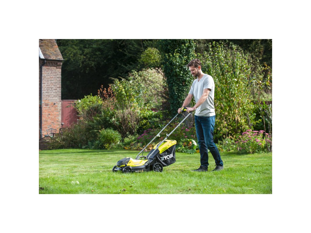 A RYOBI OLM1833B 18V LI-ION akkumulátoros fűnyíróval a pázsit karbantartása az egyik legnépszerűbb kerti tevékenységgé válik. A fűnyíró könnyen átalakítható mulcsozó fűnyíróvá, amikor csak a fűgyűjtő kosarat kell kivenni, behelyezni és rögzíteni a csomagban található mulcsozó éket. Különösen alkalmas olyan helyekre, ahol nincs hozzáférés az elektromos áramhoz, vagy ha nem kívánja kezelni a tápkábelt.