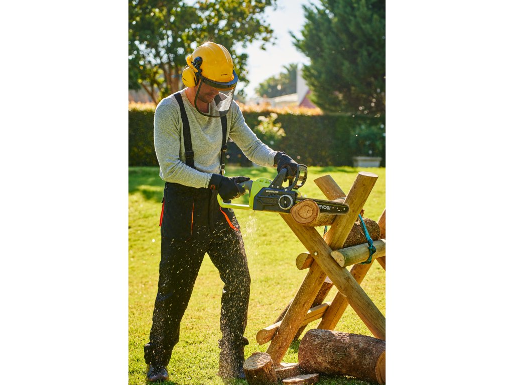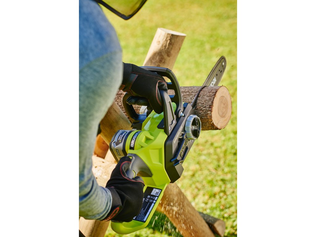 A nagy teljesítményű, 18 V-os akkumulátoros RYOBI OCS1830 láncfűrész 30 cm-es rúdhosszal az ideális mezőgazdasági osztályú fűrész minden ház és kert körüli munkához. Nélkülözhetetlen segítő nyaralók, nyaralók, családi házak környezetében ágmetszéshez, fa-, bokrok kivágásához, tűzifa- vagy ácsmunkákhoz, építési munkákhoz. Különösen alkalmas olyan helyekre, ahol nincs hozzáférés az elektromos áramhoz, vagy ha nem kívánja kezelni a tápkábelt.