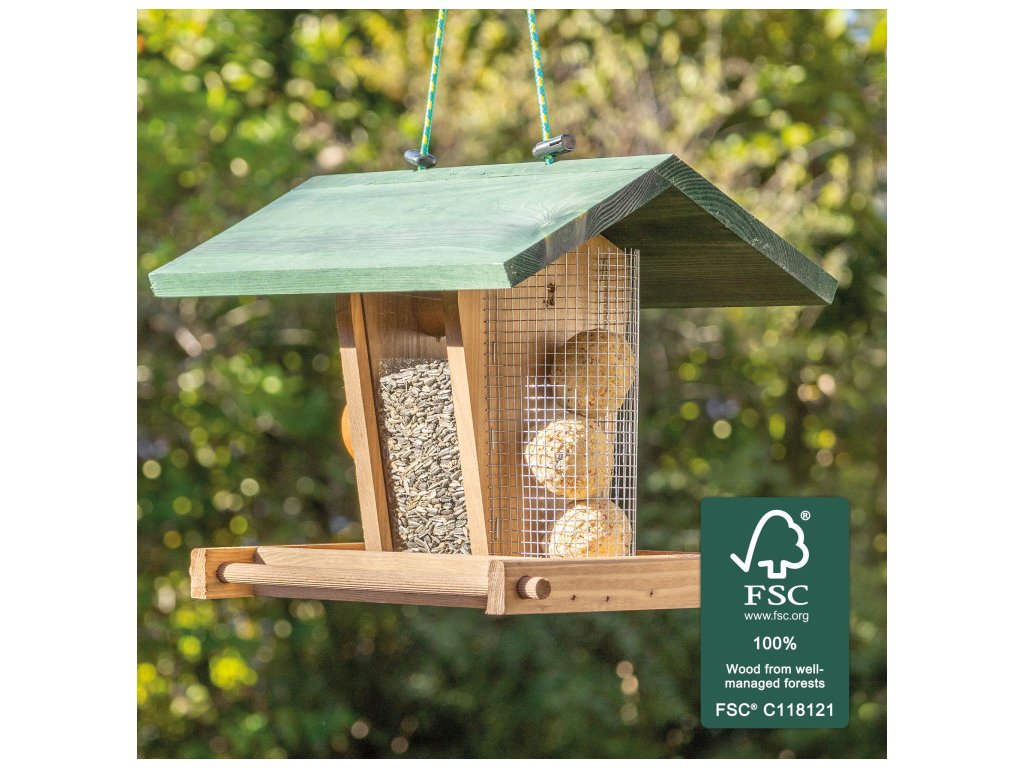 A csodálatos Bird Dream madáretető biztosan kertje dísze lesz. Fenntartható erdőgazdálkodásból származó, FSC tanúsítvánnyal rendelkező, kiváló minőségű fából készült.Az etető gyorsan és egyszerűen feltölthető nagy mennyiségű eledellel – így nem szükséges gyakran utántölteni. A feltöltés nagyon egyszerű – csak le kell venni a ház tetejét, és be lehet tölteni az új finomságokat, például faggyúgolyókat, dióféléket vagy alomanyagot.
