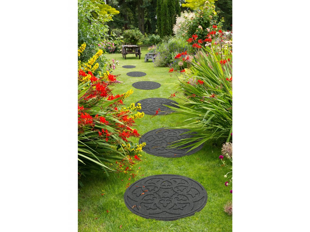 A Stepping Stone kerti járólap újrahasznosított csúszásmentes anyagból (TUV tanúsítvány) készült, díszmintával. Ez a kerti járólap biztosítja, hogy járdák valóban eredetiek és különlegesek legyenek. A futófelület újrahasznosított gumigranulátumból készül, amely garantálja a nagy tartósságot és védelmet az esetleges sérülésekkel szemben. A telepítés nagyon egyszerű és gyors.
