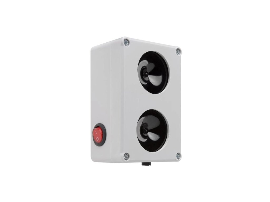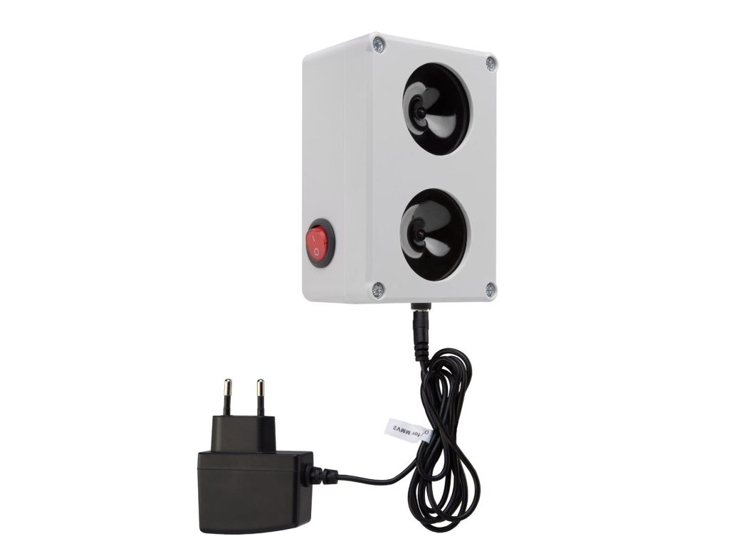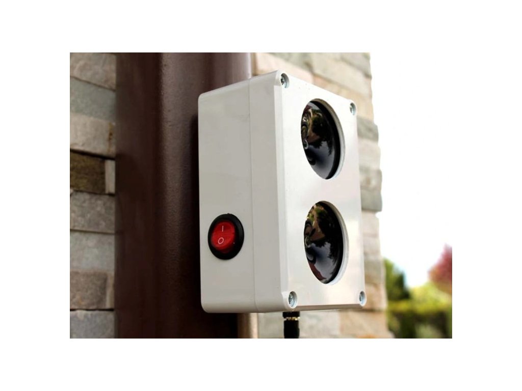 A készülék széles, 180°-os szögben működik, automatikusan változó frekvenciával, és akár 2000 m² területet is lefed. A tápellátás egy 6V-os adapteren keresztül történik, és a riasztó két membrános hangszóróval van felszerelve, amelyek átmérője 50 mm. A készülék mérete 80x120x55 mm.