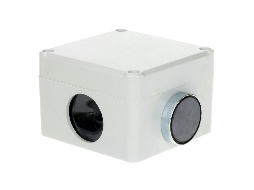 A mágneses tartónak köszönhetően a felszerelés egyszerű és gyors. Az ultrahangos riasztó 270°-os sugárzási szögben ad ki hangokat, automatikusan változó frekvenciával, és akár 1500 m²-es területet is lefed. A készüléket egy 6V-os adapter táplálja. Három membrános hangszóróval működik, mérete pedig 85x85x55 mm.