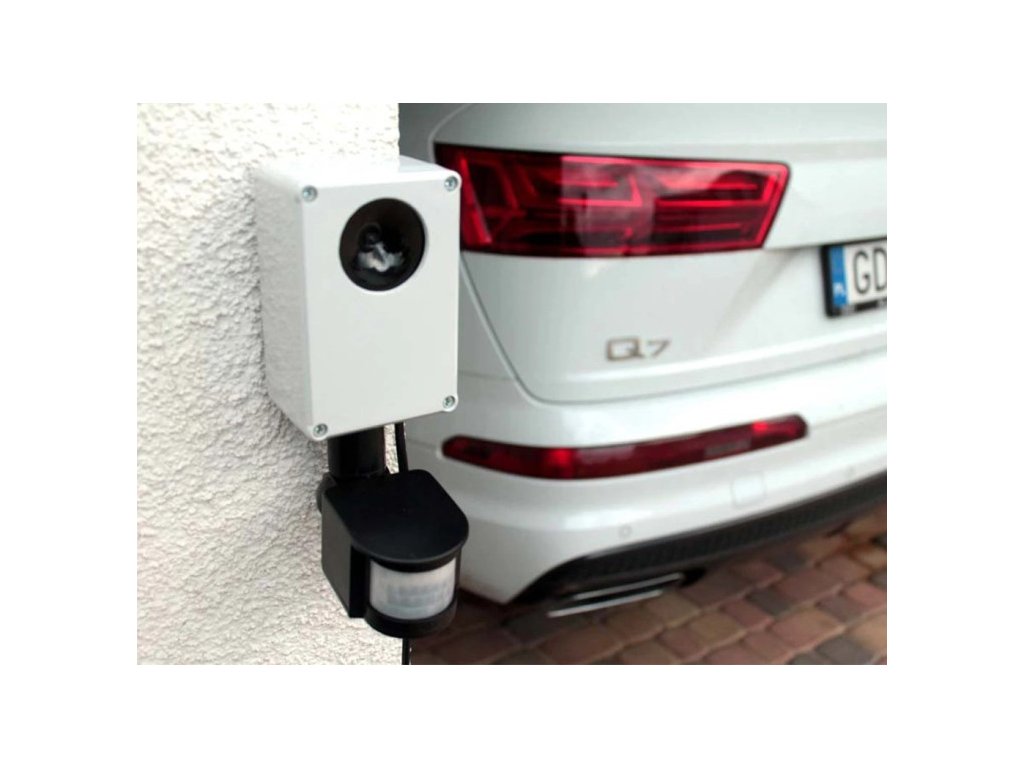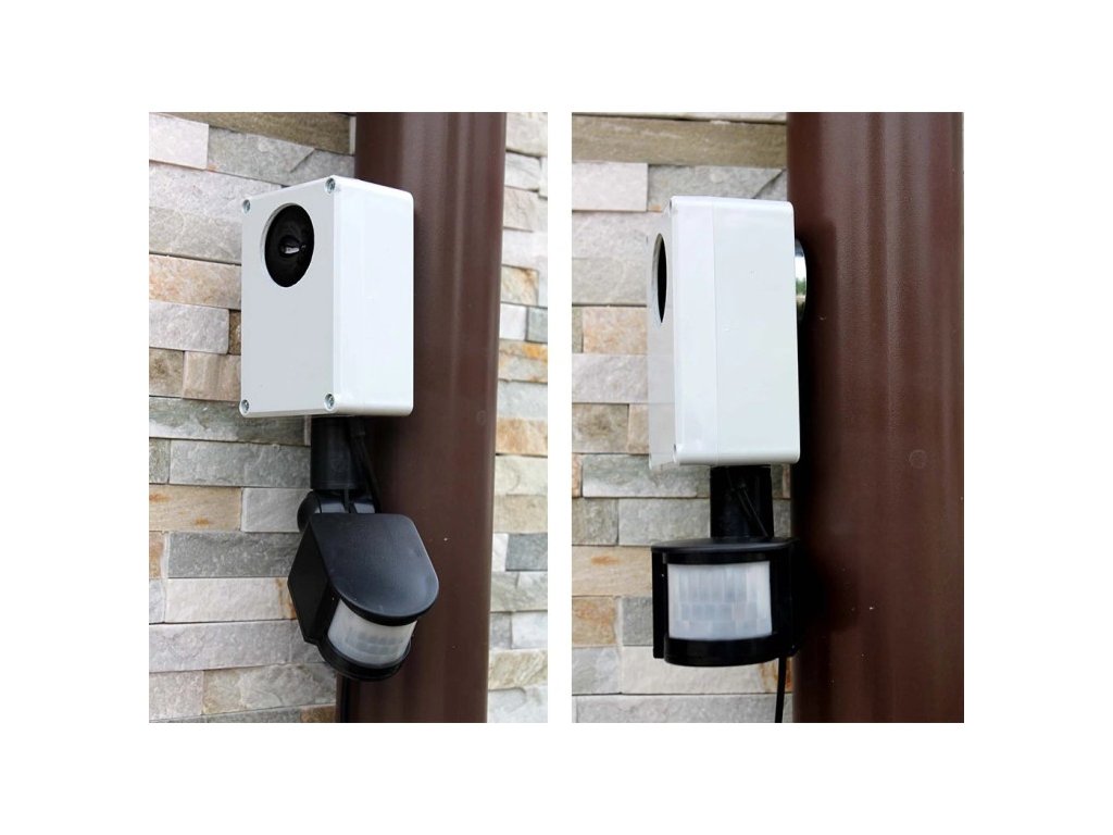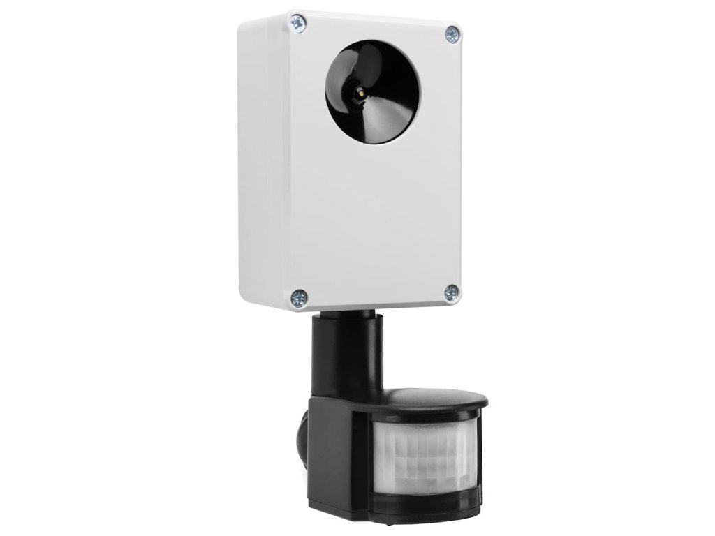 A készülék ultrahangos hullámokat bocsát ki, amelyek kellemetlenek a nyestek és rágcsálók számára, így fokozatosan elhagyják a védett területet. Az automatikusan változó frekvenciának köszönhetően – amely a hallhatatlantól a halk sípoló hangokig terjed – megelőzhető, hogy az állatok hozzászokjanak a hanghoz. Az ultrahangos hullámok jól visszaverődnek a szilárd felületekről, ami jelentősen növeli a készülék hatékonyságát. Ez a modell membrános hangszóróval rendelkezik, amely erősebb, mint a hagyományos fém hangszórók, így épületen belül akár 1500 m²-es területet is lefed, míg kültéren kb. 20 m-t, 180°-os szögben. Emellett mozgásérzékelőt is tartalmaz 12 m-es hatótávolsággal, amely mozgás érzékelésekor aktiválja a készüléket. A szenzor beállítható működési időre, érzékenységre és fényerőre.