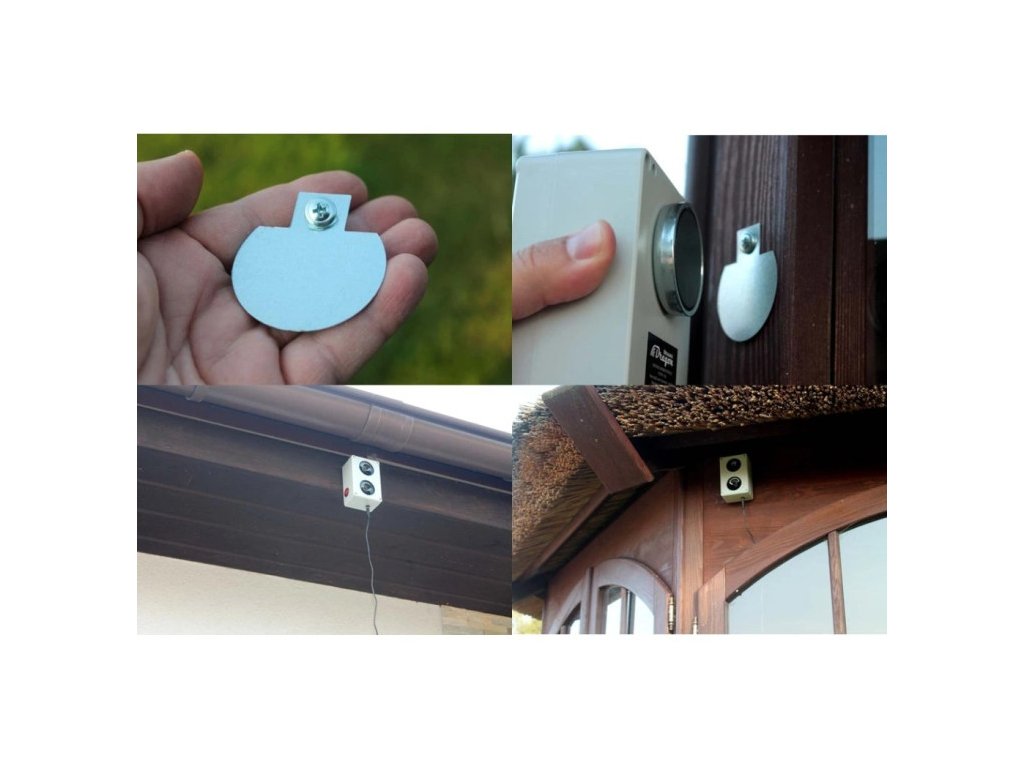 A készülék egyszerűen és gyorsan rögzíthető egy erős mágnes segítségével, amelyet fém felületre – például korlátra, csőre, párkányra, ereszre vagy más szerkezetre – kell helyezni. A csomag tartalmaz egy fém függesztőt is, amely olyan helyekre szerelhető fel, ahol nincs fémfelület, így a készülék könnyedén elhelyezhető rajta.