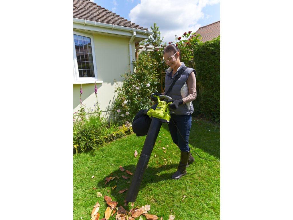 Erős kombinált elektromos fúvóka / levegőszívó RYOBI RBV3000CSV pótolhatatlan segítőtárs őszi takarításhoz a kertben és a ház körül. A fúvóka képes a levelet leszívni, lefújni és mulcsolni. A levelet könnyedén összefújhatja egy kupacba, majd leszívhatja, aminek során az aprítás révén a levél térfogata többször is csökken. Az aprított anyagot aztán kiváló komposzt alapanyagként használhatja fel.