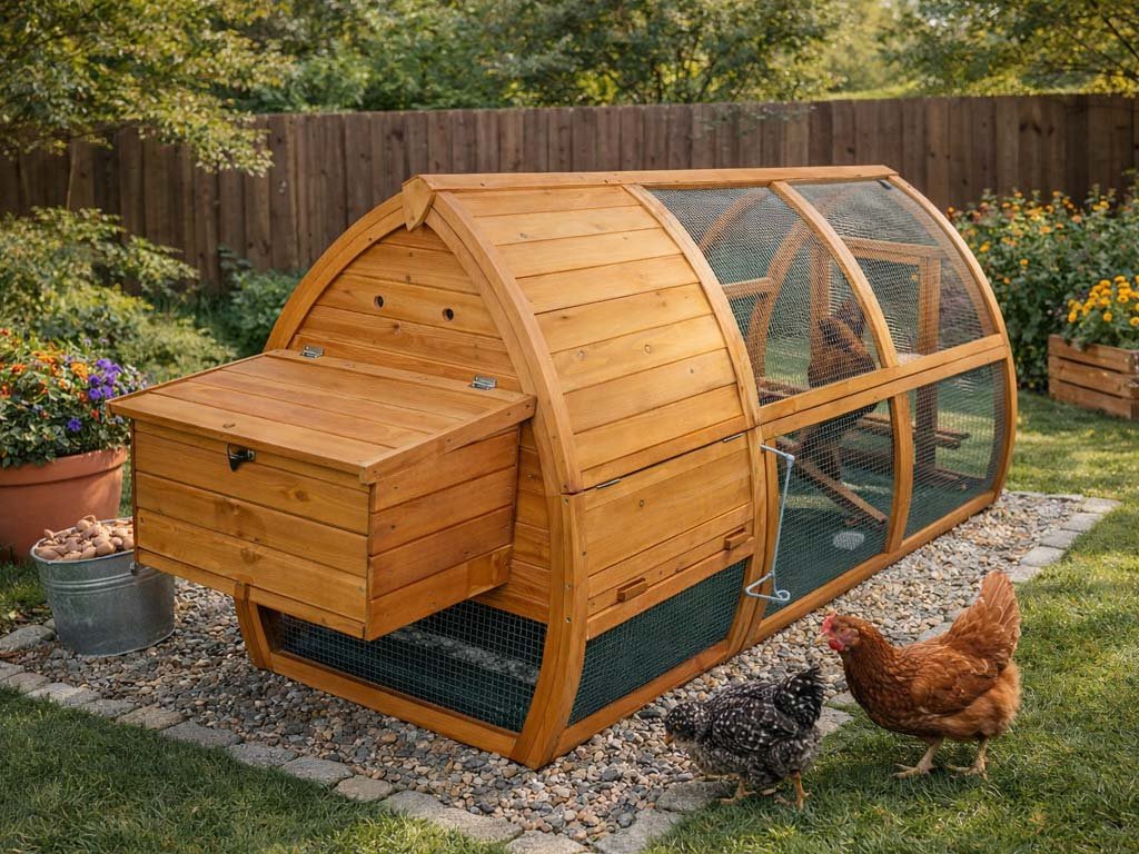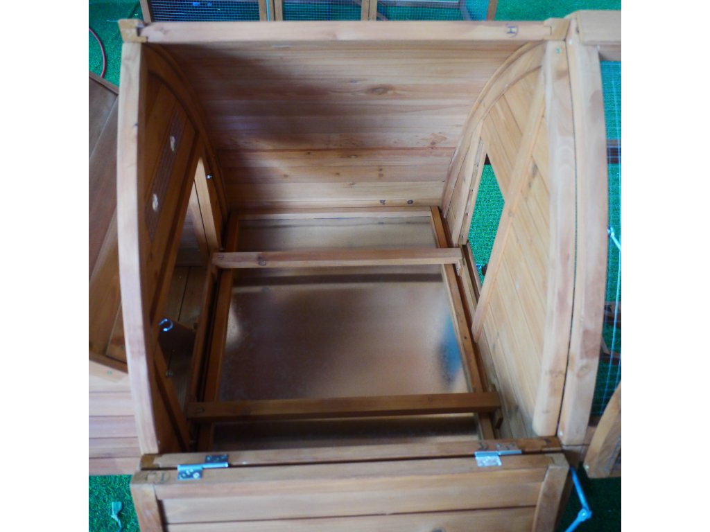 - A tyúkól kihúzható tálcával van felszerelve a könnyű tisztításhoz.