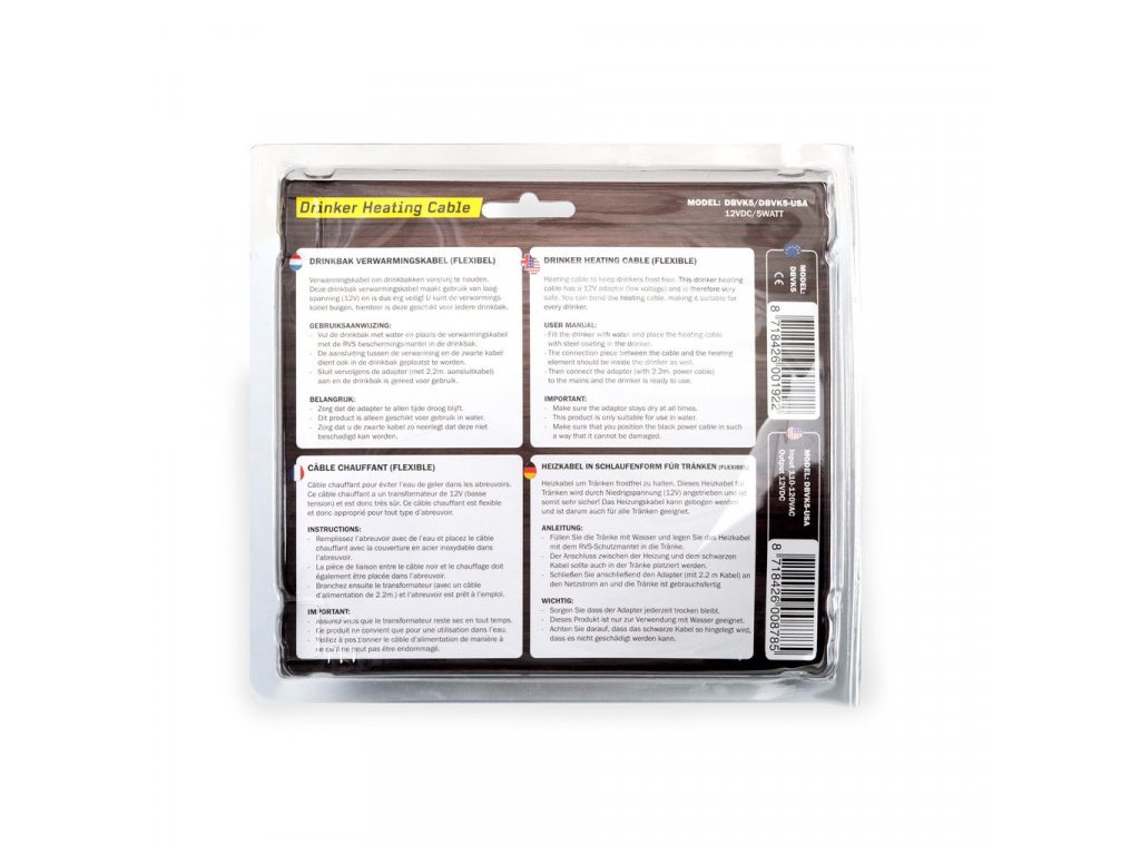 Fűtőkábel 12 V / 12 W adapterrel, rozsdamentes acél fonattal. A fűtőszakasz hossza kb. 80 cm (hurok 2x40 cm). A 230 / 12 V-os adapter a csomag tartalma.A fűtőszakaszhoz...