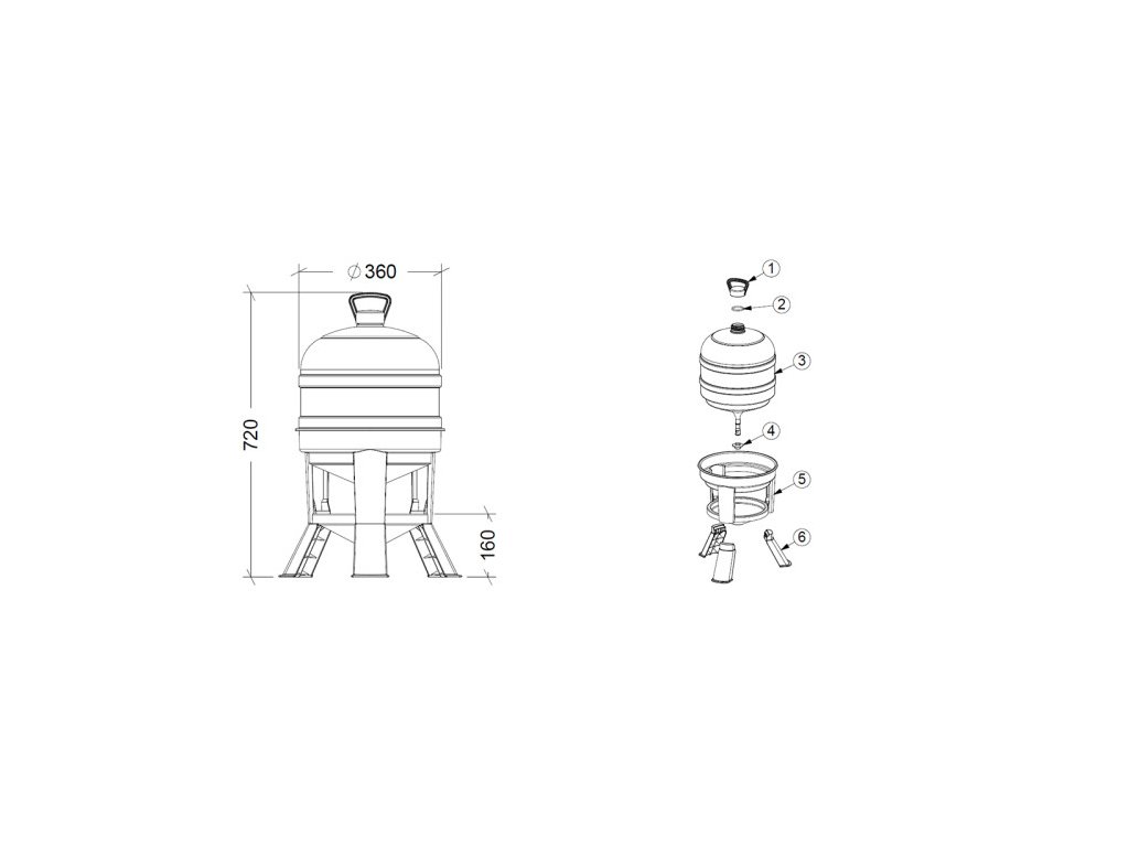 Műanyag itató a GAUN gyártótól. 30 literes űrtartalommal és 360 mm átmérőjű, 725 mm magas tartállyal ez az itató akár 80 tyúk számára is alkalmas. Úgy tervezték, hogy megfeleljen minden felnőtt baromfifaj igényeinek.