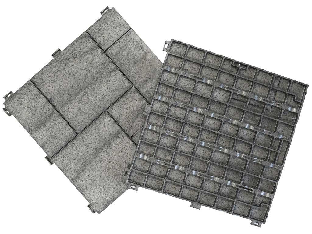 Új erkélyre, teraszra vagy kertbe való burkolatot keres? A LEGI Stone Mosaic járólapok újrahasznosított gumiból (TÜV Nord certifikáció) készülnek. Ez az anyag nagy tartósságot és hosszú élettartamot biztosít. A burkolat használható teraszon, pavilonban, erkélyen stb. Az egyenes érintkező felületek a csempe alján nem károsítják a vízszigetelést a telepítés helyén. A szigetelés és a burkolat közé nem szükséges további szövetet helyezni, mert az penészedést okozhat.Szerelés