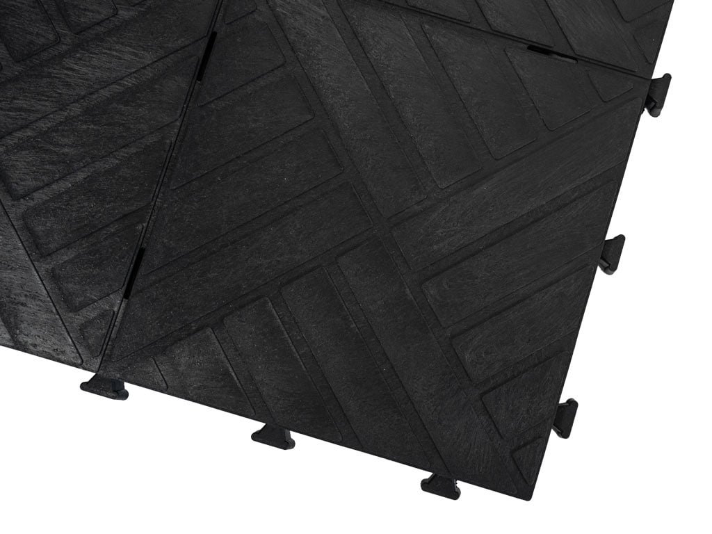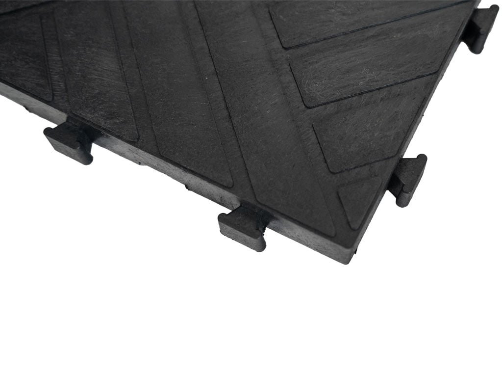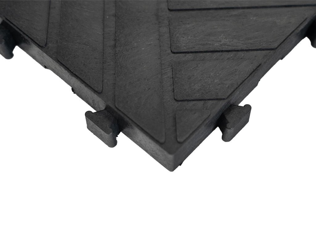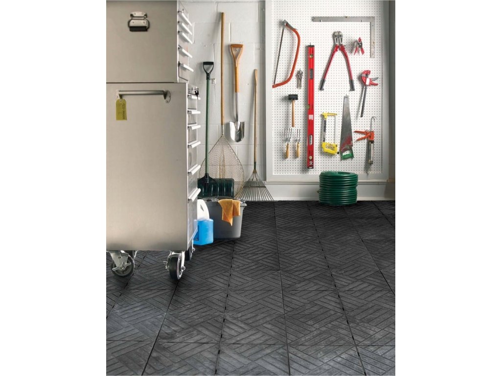 A gumianyag kiválóan csillapítja a rezgéseket és zajt, valamint csúszásmentes tulajdonságokkal rendelkezik. A burkolat vastagsága 2 mm, és speciális zárainak köszönhetően nincs szükség sarokelemekre vagy szegélyekre a befejezéshez.