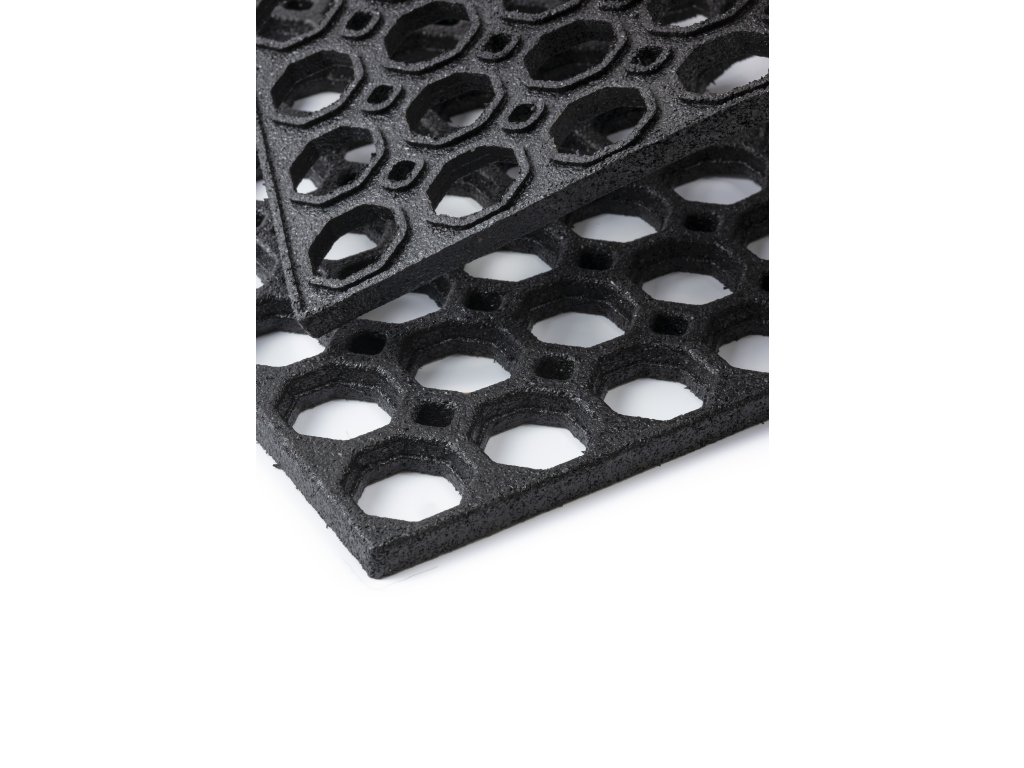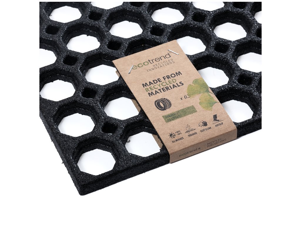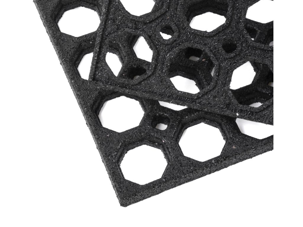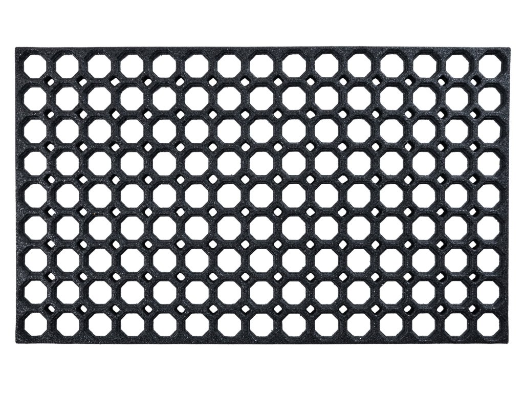 Gumiszőnyeg HONEY COMB mérete 45 x 75 cm, és ideális megoldás a lábbeli hatékony tisztítására a lakásba való belépés előtt. Ez a praktikus, de egyben dizájnos elem könnyedén betölti a funkcióját – kisebb szennyeződés esetén elegendő kirázni vagy kiporszívózni, így a karbantartása gyors és egyszerű.