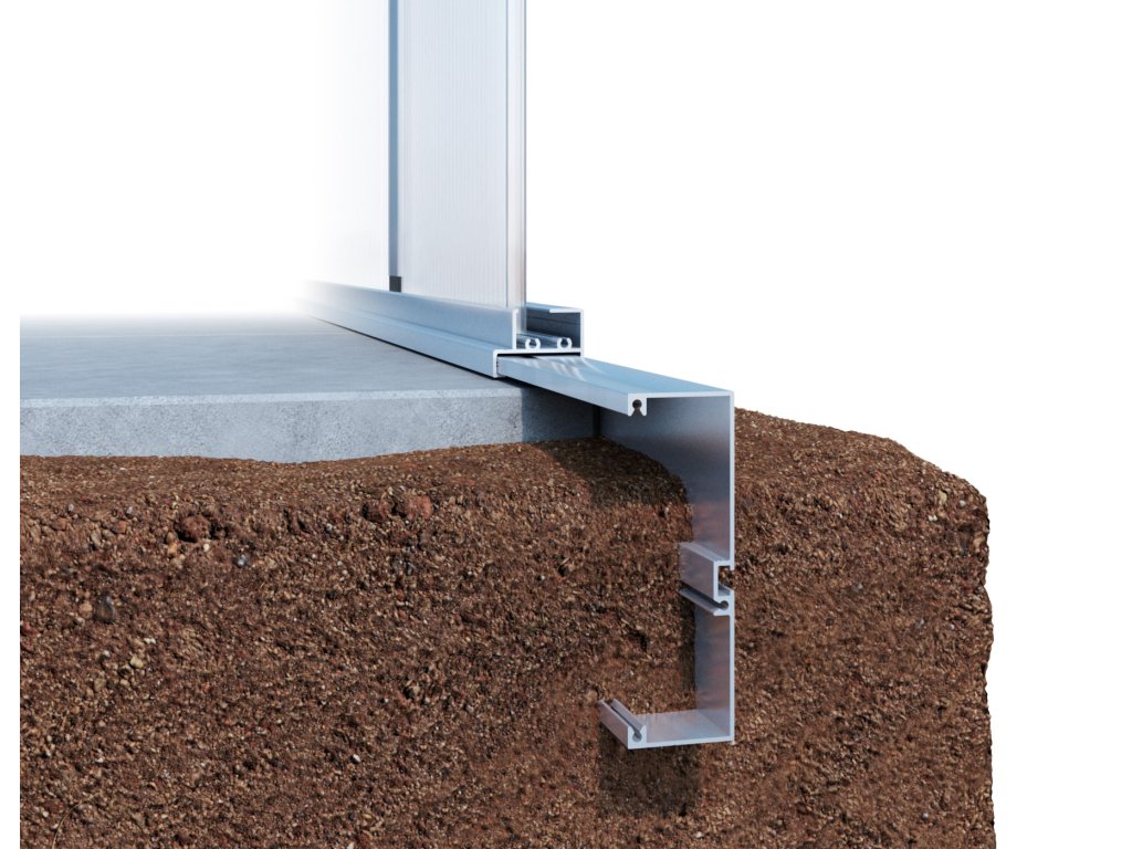 Alumínium základový keret van užitečným doplňkem. Ha nechcete üvegház upevňovat pomocí csavarok és hmoždinek vagy ha k tomu není ideális povrch, základový keret zajistí stabil spojení mezi üvegház és zemí. Základový keret zahákne pod zemní profil és poté egyszerűen zakope do talaj. Ezzel létrehoz nélkülpečné, všestranné spojení zemí. Ušetřete si čas és práci s vytvářením betonového alap és použijte volitelný alumínium základový keret. Základový keret van vyroben z hliníku odolného proti hnilobě és lze jej is után letech odstranit nélkül zanechání stop.