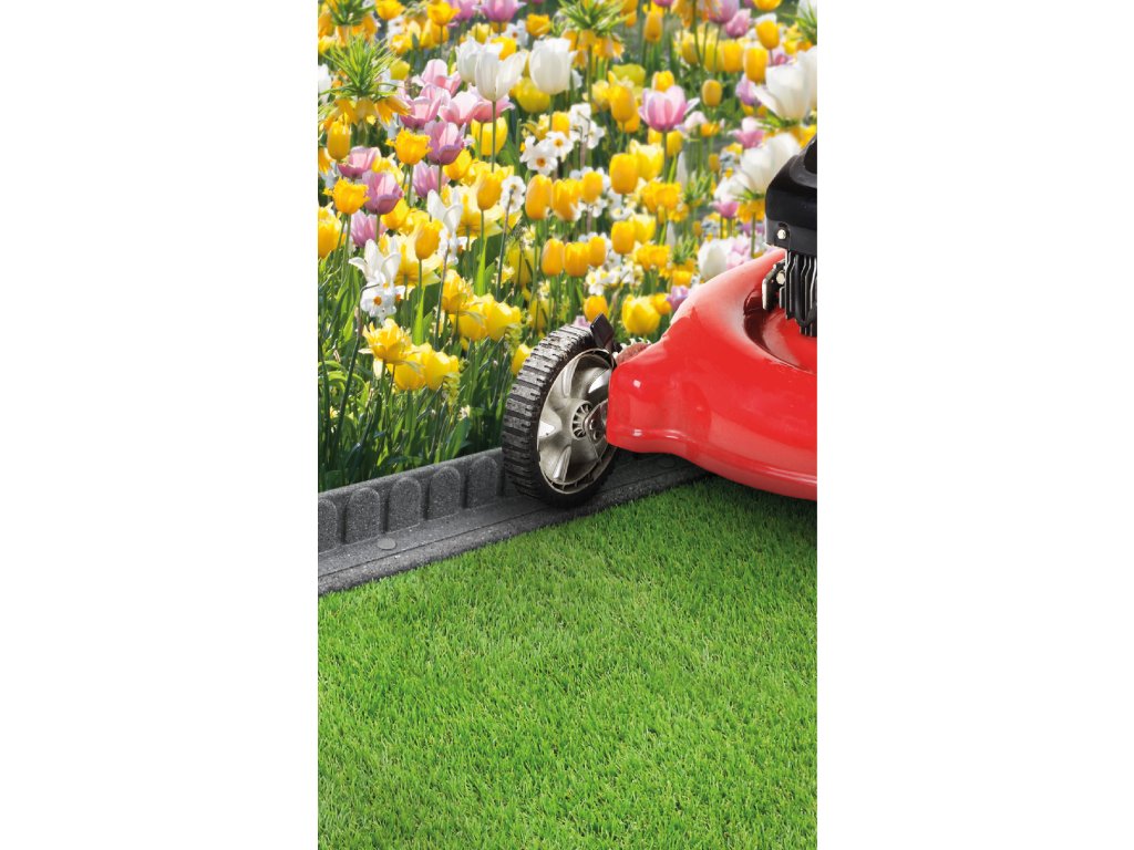 A MOWING EDGE dekoratív palánk hossza 120 cm, magassága 8 cm. Könnyen formázható és gyakorlatilag elpusztíthatatlan. Dekoratív megjelenésének köszönhetően nem csak modern kertekbe, parkokba, hanem magányos fák szegélyének is alkalmas. Nyírás közben vezeti a fűnyírót.