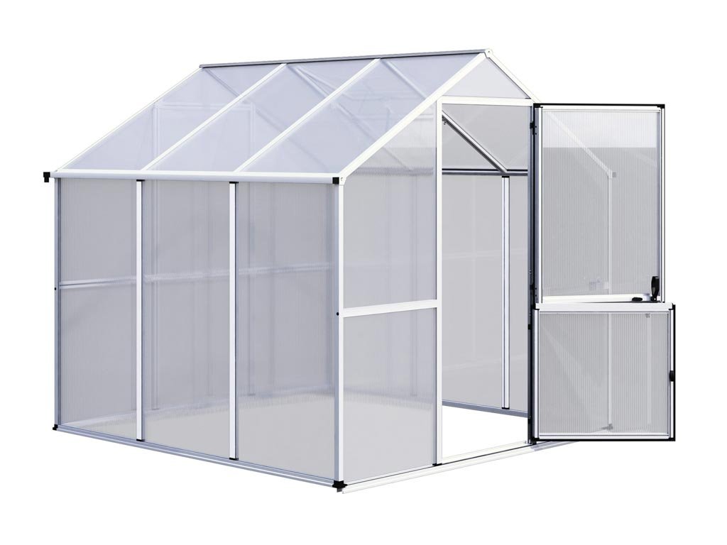 S výškou falak 1,49 m és velkorysou výškou gerinc 2,14 m van zde dostatek prostoru számára zahradničení. To znamená, hogy rajčata és okurky mohou nélkül problémů növekedés nahoru és plně rozvíjet. Masszív alumínium szerkezet és průhledné, hő szigetelő 6 mm silné dvojité falak ISO z vysoce odolného polikarbonátu biztosítják optimální stabilitu. Elérhető vannak is okapy s odtoky mindkét oldalon. Üvegház van ideális számára termesztés rostlin na začátku jara.