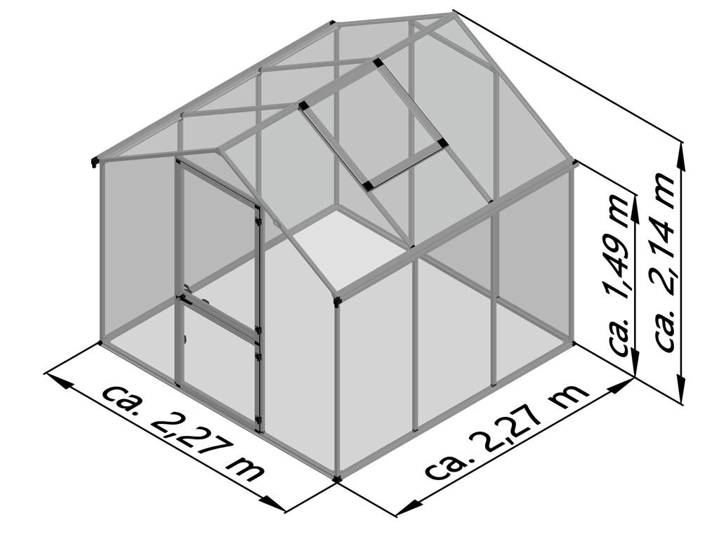 Kerti üvegház KGT Callas III 2,3 x 2,3 m, szürke alumínium