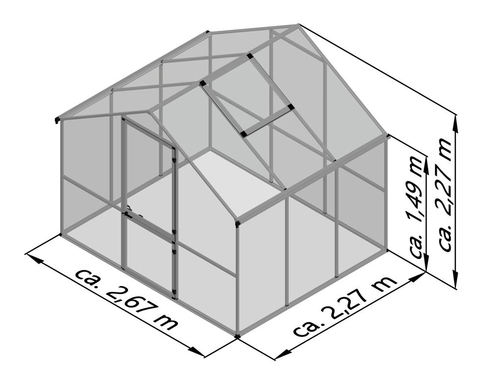 Kerti üvegház KGT Enzian III 2,3 x 2,7 m, szürke alumínium