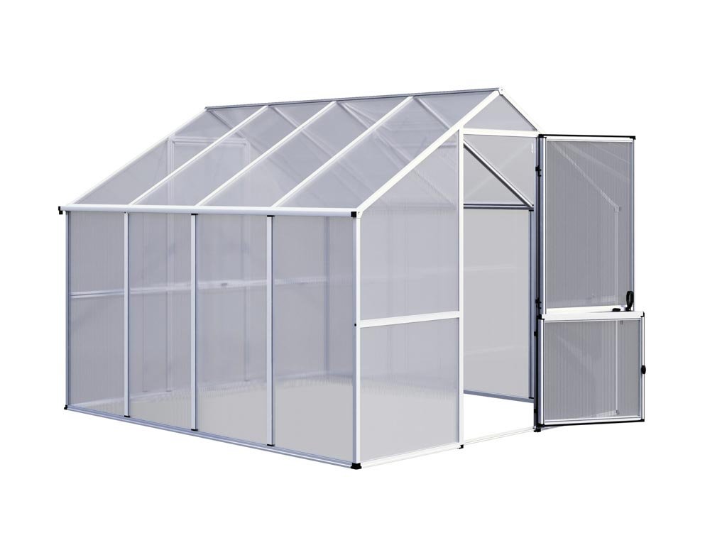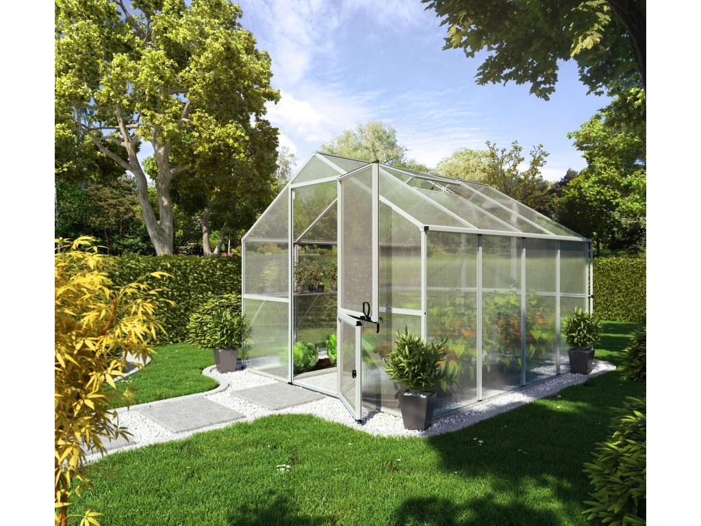 S výškou falak 1,49 m és velkorysou výškou gerinc 2,27 m van zde dostatek prostoru számára zahradničení. To znamená, hogy rajčata és okurky mohou nélkül problémů növekedés nahoru és plně rozvíjet. Masszív alumínium szerkezet és průhledné, hő szigetelő 6 mm silné dvojité falak ISO z vysoce odolného polikarbonátu biztosítják optimální stabilitu. Elérhető vannak is okapy s odtoky mindkét oldalon. Üvegház van ideális számára termesztés rostlin na začátku jara.