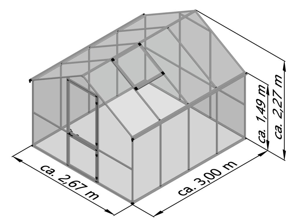 Kerti üvegház KGT Enzian IV 3 x 2,7 m, szürke alumínium