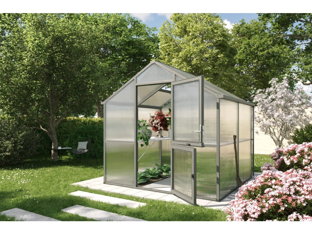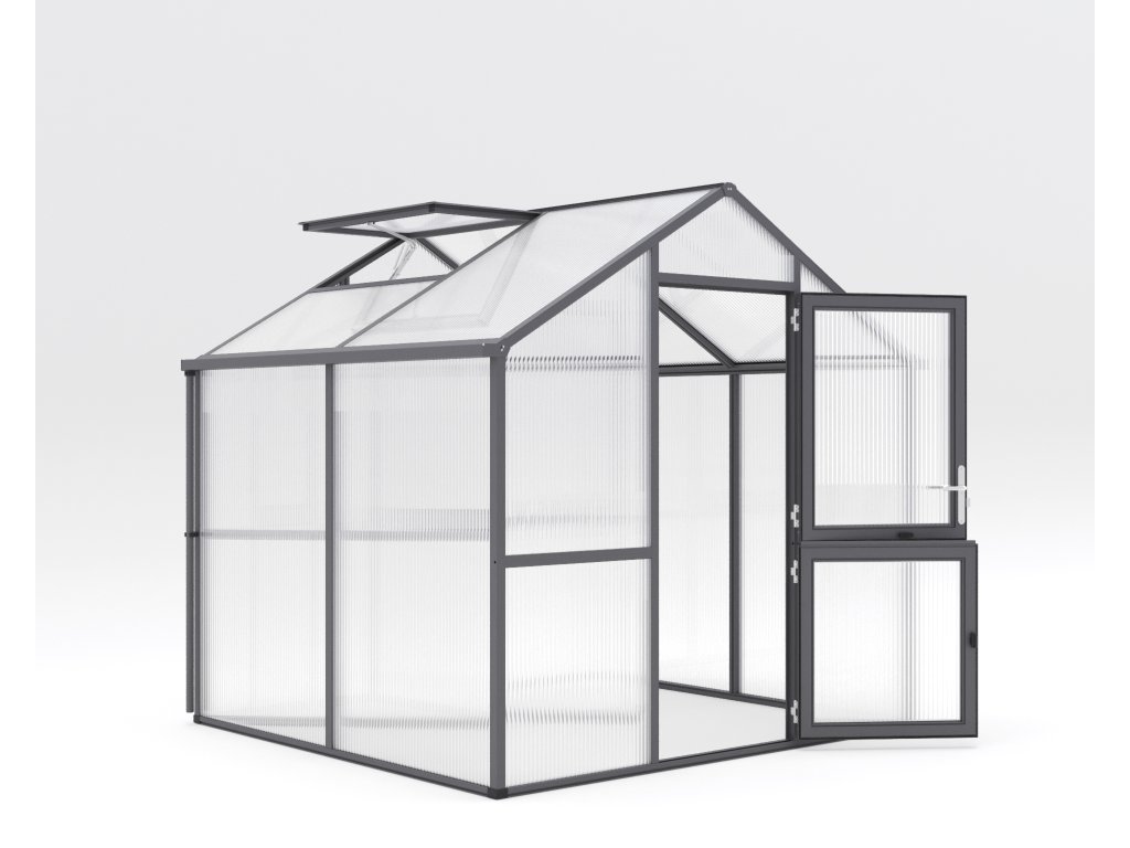 Köszönhetően 16 mm dutým komorovým panelům ISO vannak az Ön rostliny jól chráněny is során nižších teplotách. Inteligentní szellőzés üvegház Iris lehetővé teszi optimální podmínky számára növekedés. Széles osztott ajtó na panty poskytují pohodlný hozzáférés, zatímco velké tetőablak s automatickým otvíračem biztosítja přísun čerstvého vzduchu. Praktické ablak v hátsó falhoz s kézi otevíráním doplňuje důmyslný szellőző systém.