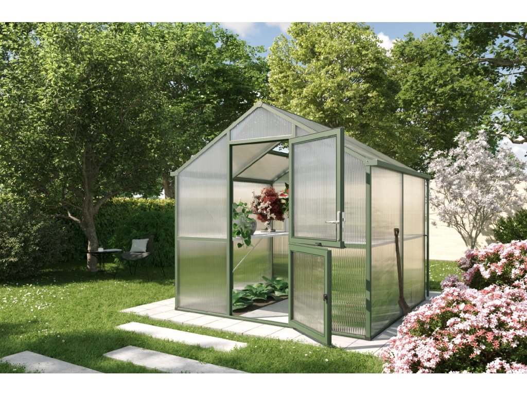 Üvegház Iris van elérhető ve třech barevných variantách: přírodní alumínium, jedlově zelená (RAL 6009) és antracitově šedá (DB 703). Köszönhetően tomu si tudja vybrat design, amely nejlépe zapadne do az Ön zahrady.