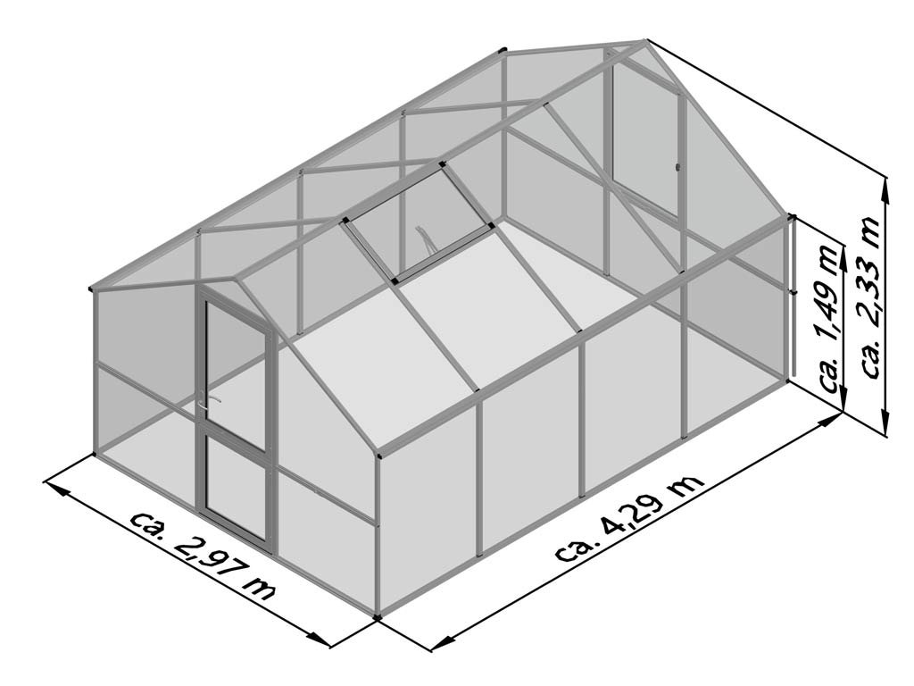 Kerti üvegház KGT Orchidee IV 4,3 x 3 m, szürke alumínium
