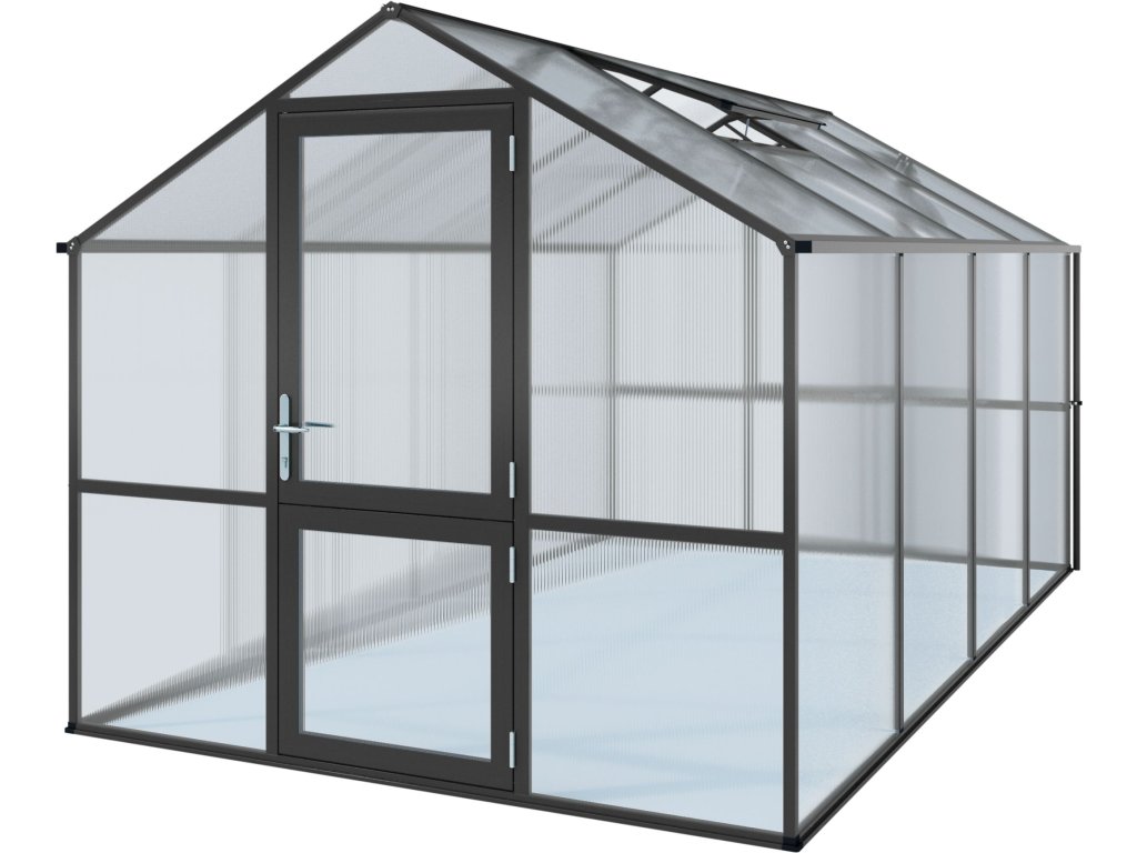Alumínium üvegház KGT Rose antracit byl kifejezetten vyvinut számára náročné hobby kertiky. Průhledné dvojité falak ISO o 10 mm vastagságú vannak után celém obvodu zcela uzavřeny v profilech, takže desky ani során nepřízni počasí nemohou uvolnit. K rögzítés nejsou použity žádné sponky ani drobné příchytky – zaüvegház výrazně növeli stabilitu celé szerkezet. Dvojité falak nepropouštějí UV záření, és proto stínění obvykle není nutné; ugyanakkor mají vysokou szigetelő hodnotu, takže hő udrží ve üvegház déle.