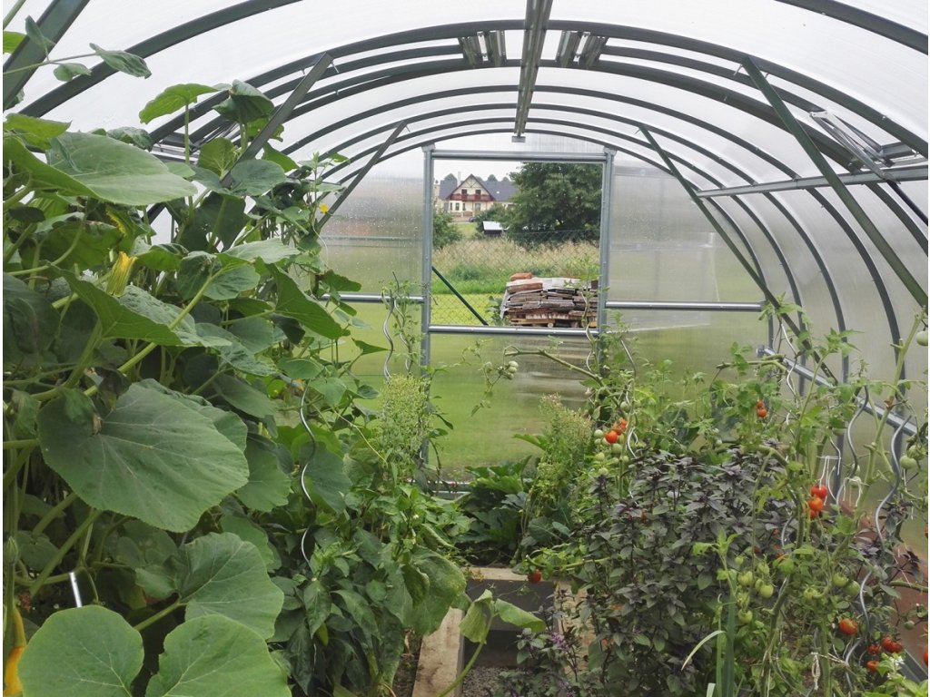 Zaüvegház üvegház van alkotja čirým dutinkovým (kamrásm) polikarbonátem o 6 mm vastagságú s UV ochranou, amely má zvýšené hő szigetelő vlastnosti, oproti általában prodávaným üvegházm. Polikarbonát megfelel minden podmínky zdravotní nezávadnosti.