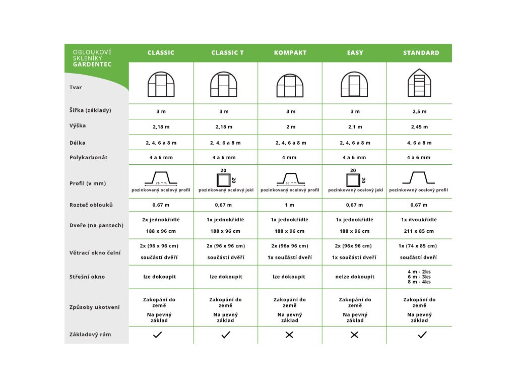 | Tloušťka profil | 1 mm (o 30% silnější než u běžných obloukových üvegház) |