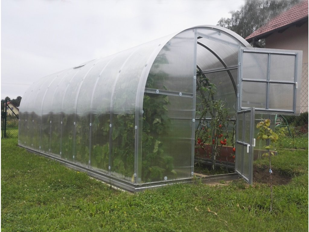 Zaüvegház üvegház van alkotja čirým dutinkovým (kamrásm) polikarbonátem o 6 mm vastagságú s UV ochranou, amely má zvýšené hő szigetelő vlastnosti, oproti általában prodávaným üvegházm. Polikarbonát megfelel minden podmínky zdravotní nezávadnosti.