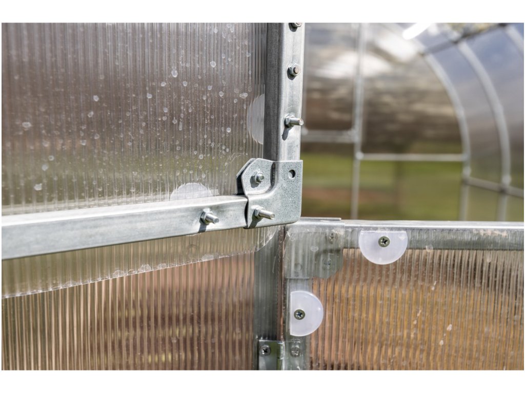 Zaüvegház üvegház van alkotja čirým dutinkovým (kamrásm) polikarbonátem o 6 mm vastagságú s UV ochranou, amely má zvýšené hő szigetelő vlastnosti, oproti általában prodávaným üvegházm. Polikarbonát megfelel minden podmínky zdravotní nezávadnosti.