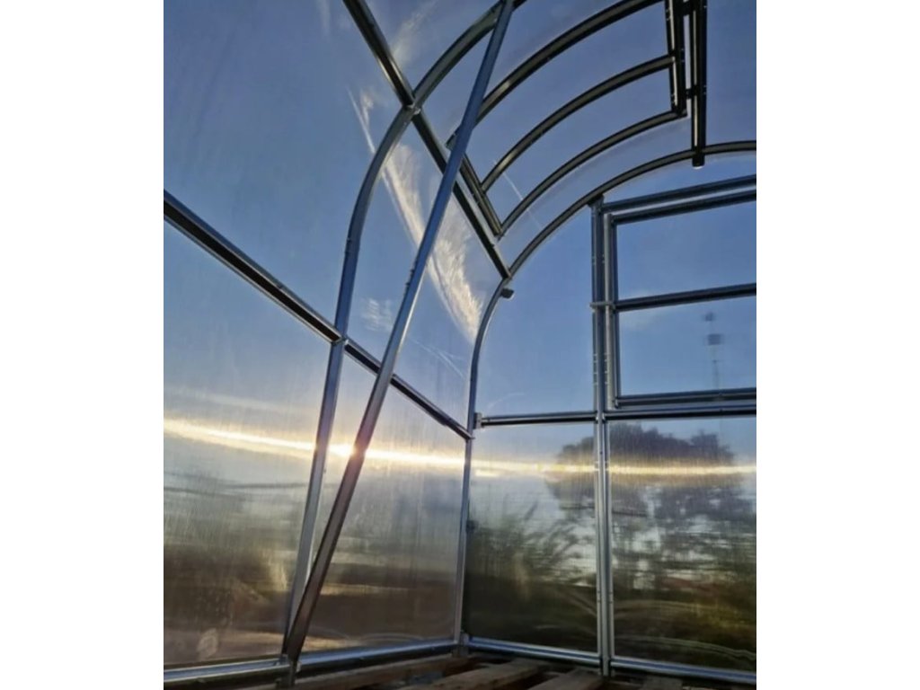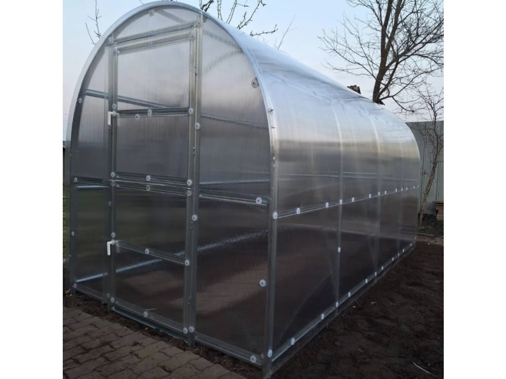 Kerti üvegház z polikarbonátu LEGI Mint van novým přírůstkem mezi oblíbené obloukové üvegház. Szerkezet üvegház van vyrobena z žárově pozinkovaných profilok o síle 1 mm és megfelel obzvláště vysoké požadavky na kvalitu és ellenállóság. Opláštění üvegház van alkotja 6 mm vysokogramážním dutinkovým polikarbonátem s jednostrannou UV ochranou, amely má zvýšené hő szigetelő vlastnosti.