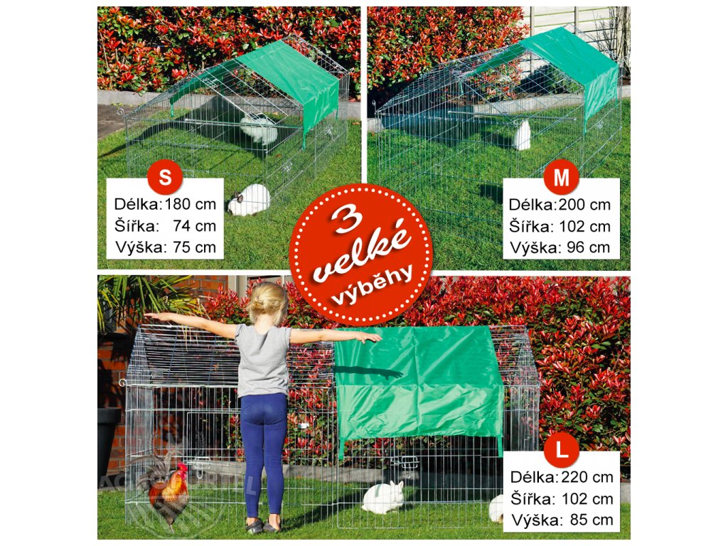 Kültéri kifutó M méret - baromfi és nyulak számára, 2000 x 960 x 1020 mm, ponyvával