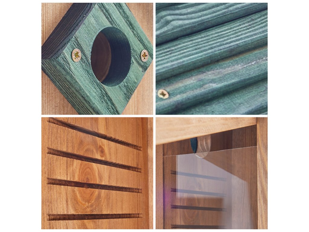 A belső oldalon barázdák találhatók, amelyek megkönnyítik a fiókák számára a kijárathoz való feljutást. Az előfúrt akasztónyílásnak köszönhetően az odú könnyedén felszerelhető a kertben. A fészekodúk nemcsak fészkelőhelyként szolgálnak, hanem ideális menedéket nyújtanak a kerti madaraknak a hidegebb hónapokban is, és elősegítik a biodiverzitást a kertben.Ezzel az odúval aktívan hozzájárulhat az őshonos madárfajok védelméhez.