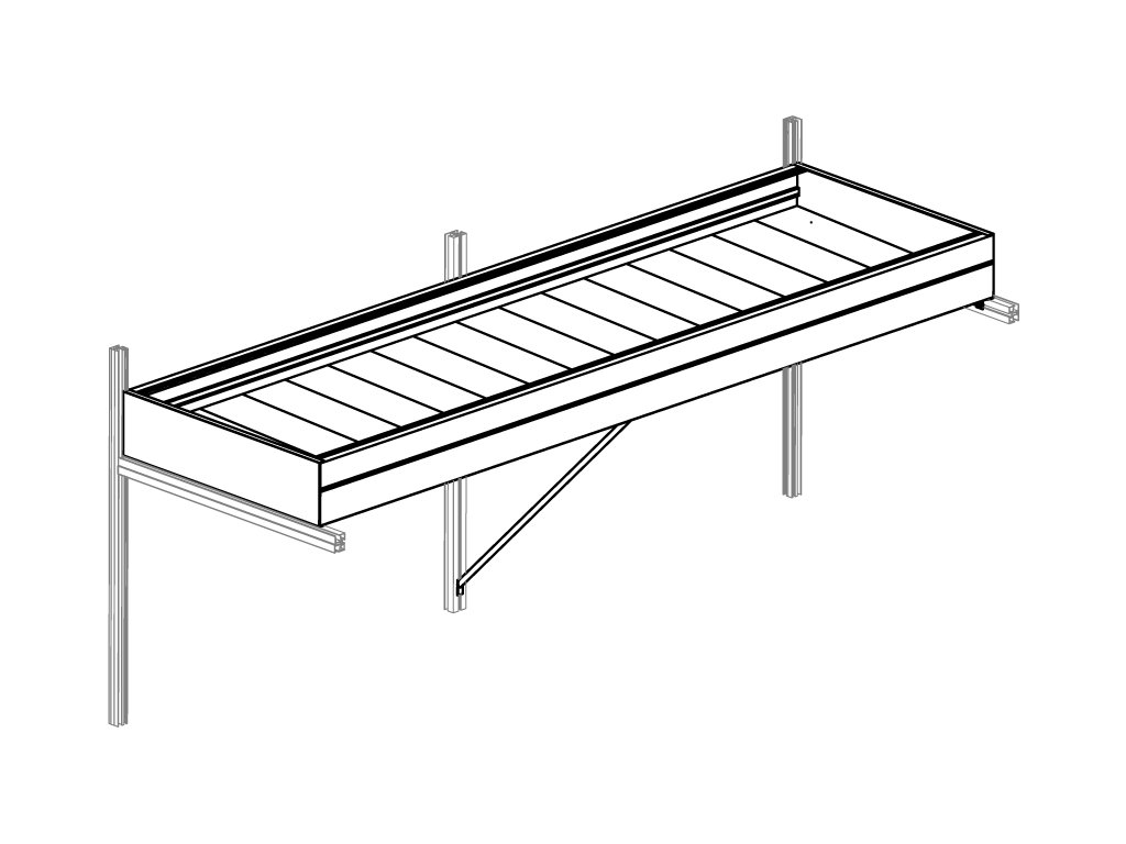 Praktický podnos na rostliny KGT van vyroben z vysoce minőségiho hliníku és vede podél celé oldalsó falak üvegház. Vysoce ellenálló plastové vložky lze külön-külön vyjmout és snadno vyčistit. Köszönhetően inteligentnímu rögzítés ke üvegház vydrží mind nosné komponenty vysoké terhelés. Hloubka podnosu van kb. 63,5 cm. Podnos na rostliny má is okr