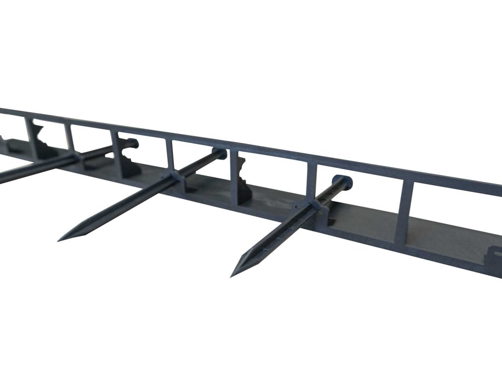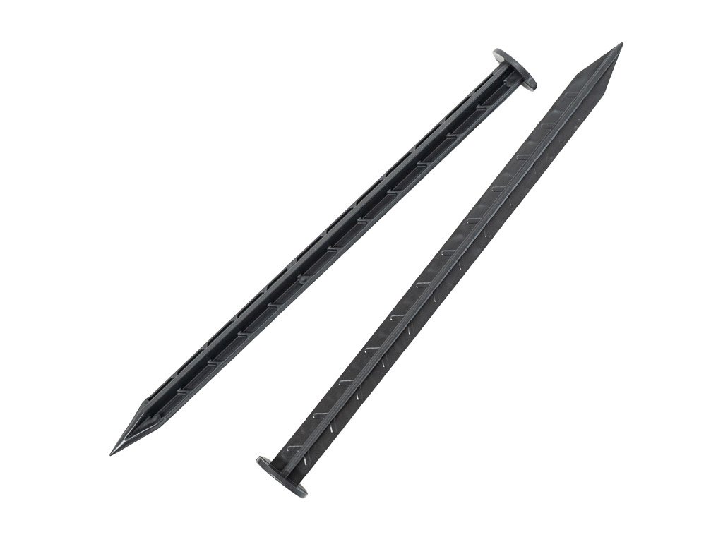 A fektetéskor fokozatosan rögzíteni kell a műanyag járdaszegélyt. Két lehetőség közül választhat: műanyag és fém szegek. A műanyag horgonyszegek különösen akkor használhatók, ha a szokásos altalajhoz - például a skyprén talajhoz - rögzítenek. Az acél horgonyszegek viszont olyan helyeken használhatók, ahol sűrűbb altalajjal találkozik – például agyagos talajban.