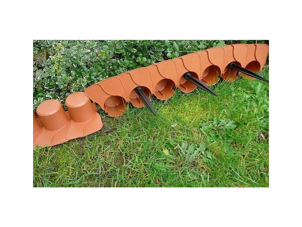 Kertészeti palánk IPAL 5 terrakotta színű festéssel szabad formázásra és a gyep elválasztására az utaktól és a kertektől. Egyszerű telepítés. Teljes hossza 270 cm.