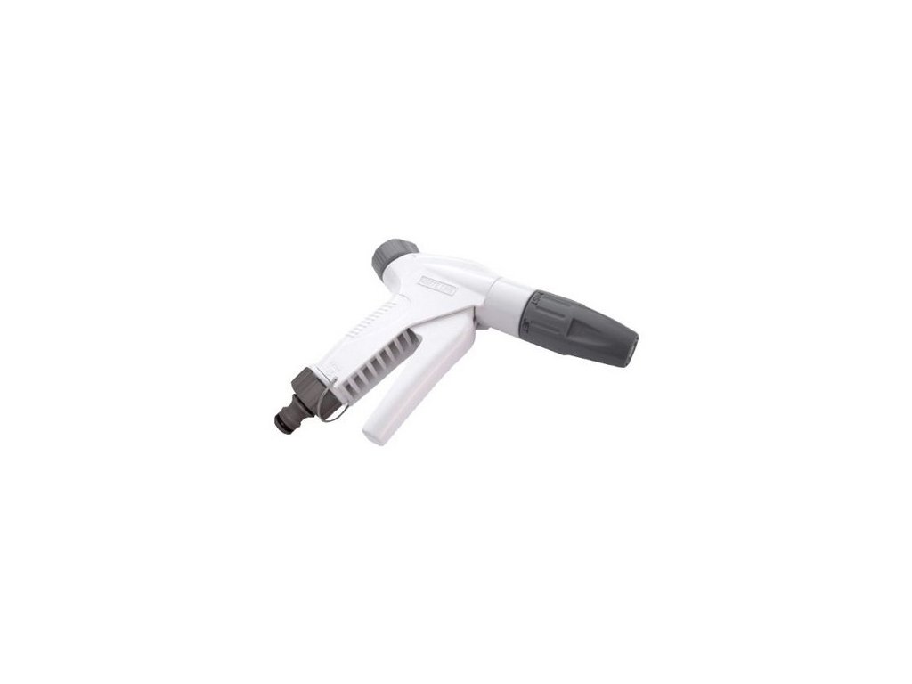 Az Állítható permetezőpisztoly, a SUPER SPRAY WHITE LINE a kerti tömlőkre szerelve kibővíti a permetezési lehetőségeket - 3 funkcióval.