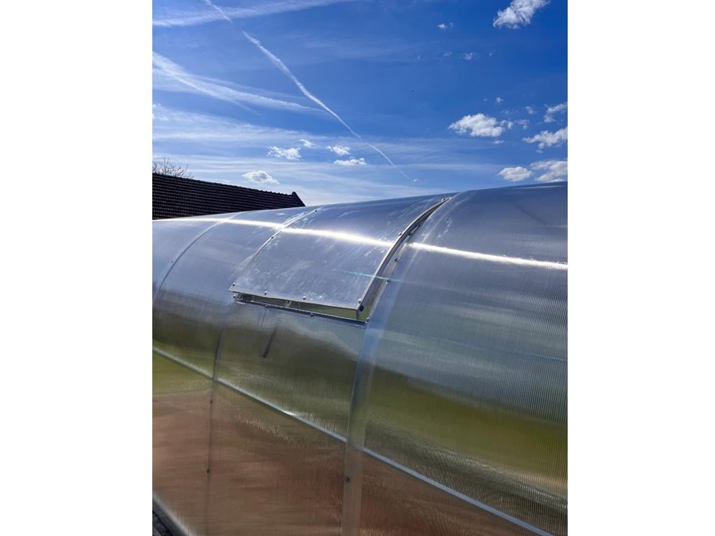 A tetőablak beszerelhető az üvegház telepítésekor, de akár annak használata során is (vigyázva a már meglévő ágyások sértetlenségére). Az ablakot mindig ívként, vagyis úgy javasoljuk beszerelni, hogy ne legyen két ablak közvetlenül egymás mellett. Az ablak szerelése során az üvegházból kivágott polikarbonátot használják fel. Ezért a polikarbonátot célszerű tömítő- vagy szellőzőszalaggal lezárni. A teljes szerelési folyamatot az alábbi videón tekintheti meg.