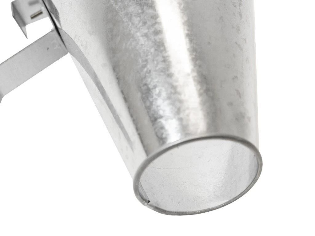 Kiváló minőségű, 0,6 mm vastagságú rozsdamentes acélból készült L méretű vérleeresztő tölcsér, amely ideális baromfi – például csirkék, kacsák, ludak, pulykák és egyéb nagyobb szárnyasok – levágásához és kivéreztetéséhez. A tölcsér felső átmérője 300 mm, alsó átmérője 114 mm, magassága pedig 335 mm.