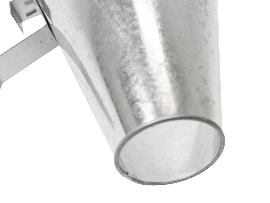 Kiváló minőségű, 0,6 mm vastagságú horganyzott lemezből készült S méretű vérleeresztő tölcsér, amely ideális baromfi – például csirkék és tyúkok – levágásához és kivéreztetéséhez. A tölcsér felső átmérője 235 mm, alsó átmérője 75 mm, magassága pedig 190 mm.