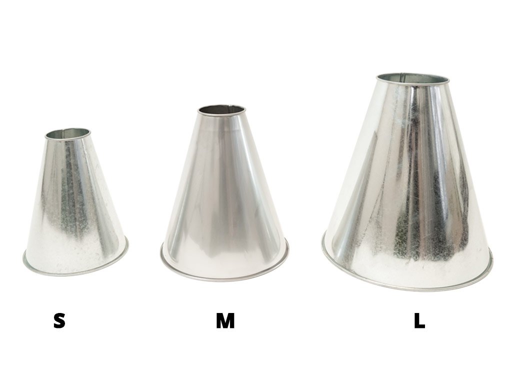 Kiváló minőségű, 0,6 mm vastagságú horganyzott lemezből készült L méretű vérleeresztő tölcsér, amely ideális baromfi – például csirkék, kacsák, ludak, pulykák és egyéb nagyobb...