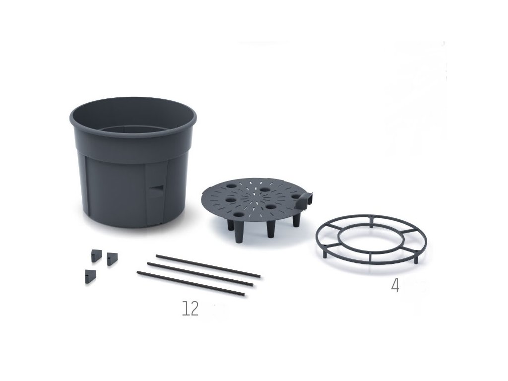 A kiváló minőségű műanyag és az átgondolt kialakítás biztosítja a kényelmes használatot. Az egész készlet 21 darabból áll: tartályból, alapbetétből, 4 gyűrűből, 3 tartóból és 12 csatlakozóból A virágcserép speciális öntözőnyílással van ellátva, amely közvetlenül a gyökerekhez irányítja a vizet. Az alsó betét megvédi a gyökereket a felesleges nedvességtől és biztosítja a növény növekedésének optimális feltételeit.