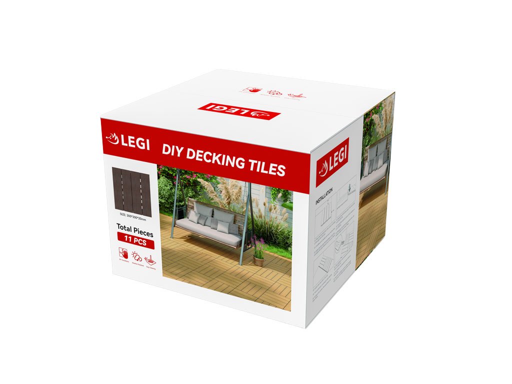 A sötétbarna színű LEGI Base WPC burkolólapok a LEGI komplex padlórendszerének részei, és kültéri padlóburkolatként ajánlottak. Nagyon egyszerűen és gyorsan szerelhetők és szétszerelhetők. A Base burkolólap mérete 2,0 x 30 x 30 cm.